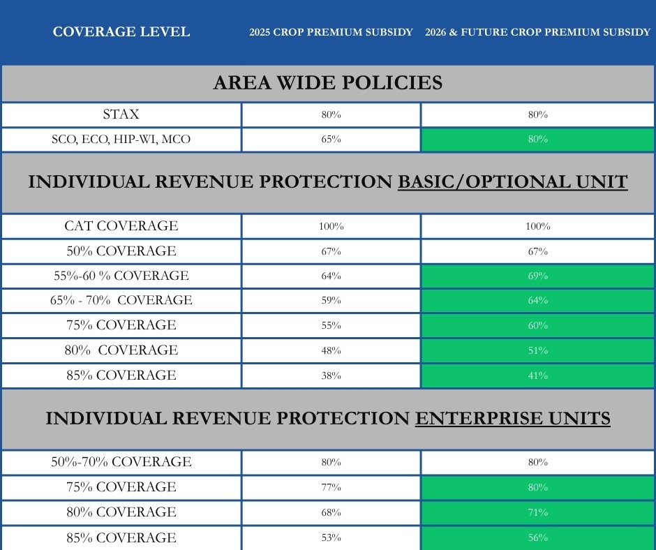 Increased subsidies as of 2026 farm bill